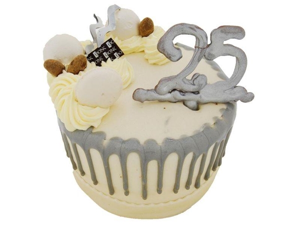 Een gouden of zilveren jubileumdriptaart maakt elk jubileum feestje compleet.