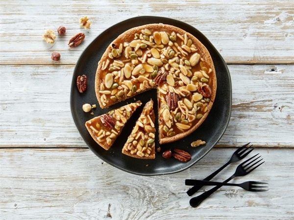 Een goed gevuld taartje gemaakt van bloem, roomboter, suiker en zuivere amandelspijs. Het taartje wordt gevuld met een smakelijke caramel van noten.
